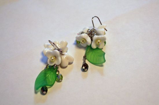 グリーンの濃淡のチェコビーズとラスチックの葉っぱの