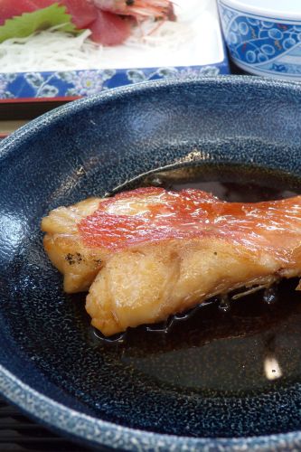 せっかくだからと、名産の金目(鯛)の煮付けを食べた。