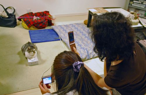 生で見る箱乗り猫に大興奮の先輩ふたり。