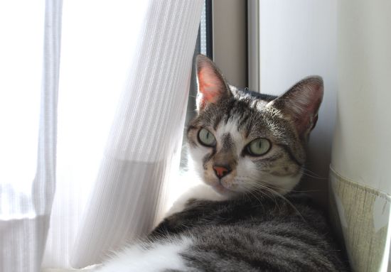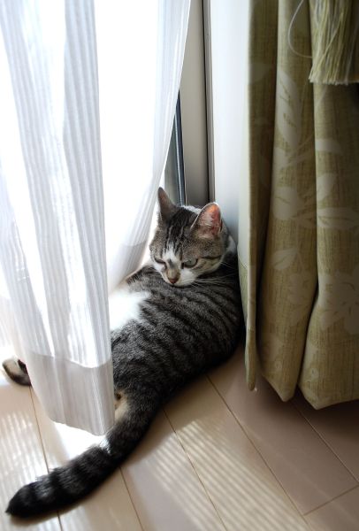 せっかく涼しいのに、わざわざ日差しが照りつける窓際に約1匹。