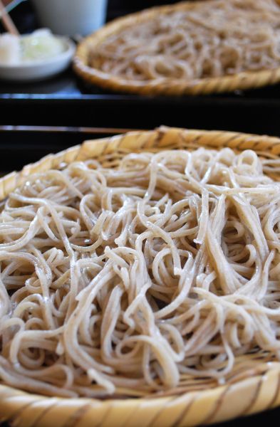 安曇野の清流の水で茹で上げ、さらした蕎麦。