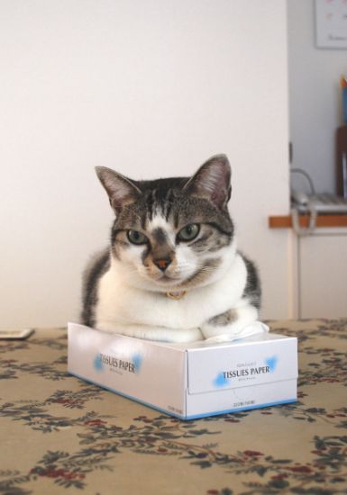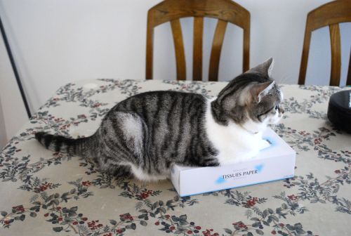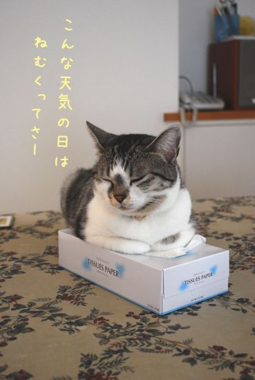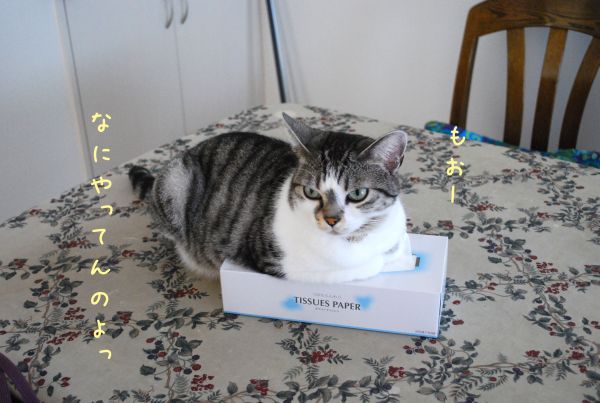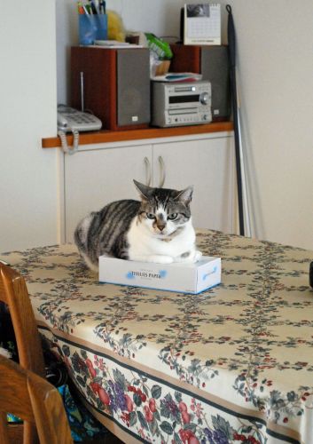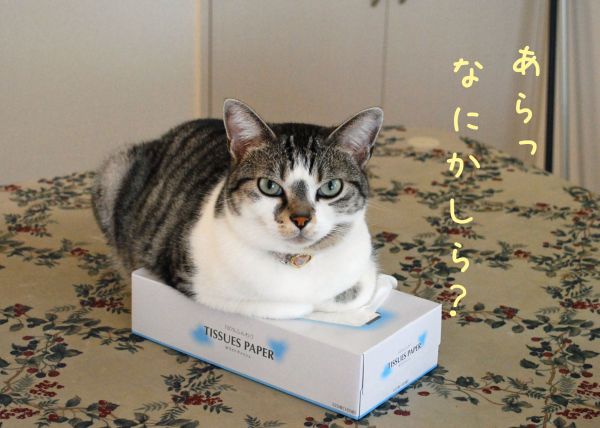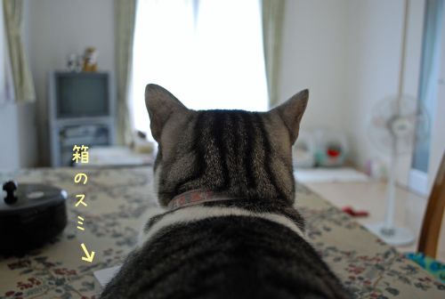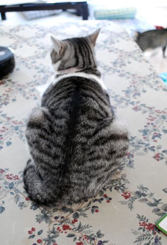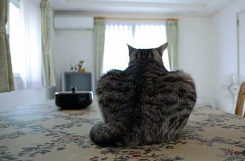 後ろに回ると、普通にテーブルの上で香箱を作っているように