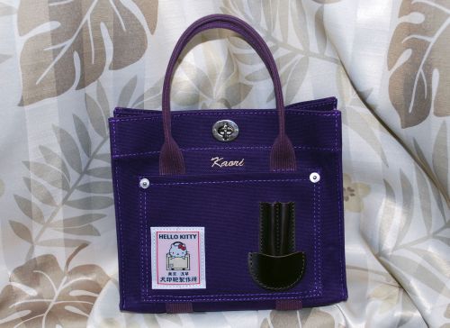 これはねえ、紫の帆布で作ったミニ・トートバッグ。
