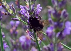 ラベンダーの蜜を収穫するのに忙しい、丸っこい蜂