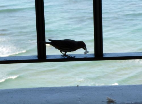 今年も変らずラナイにはスズメの赤いのが訪れ