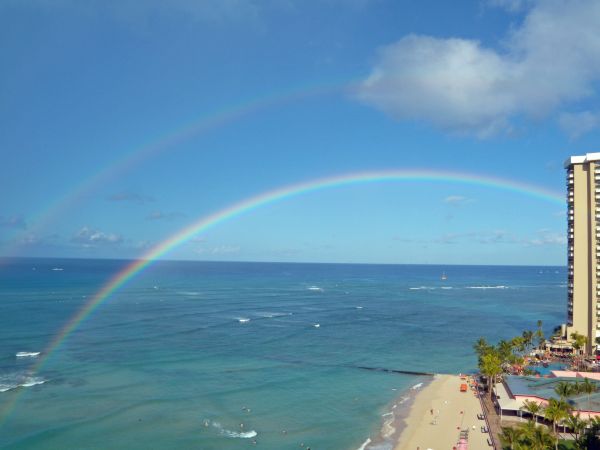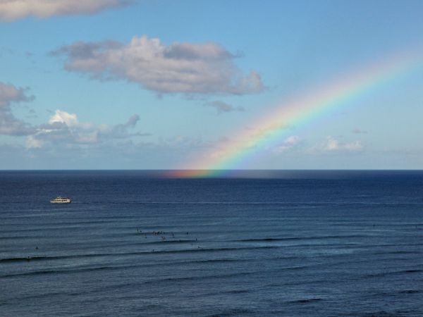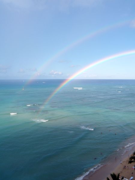海にかかる巨大な虹も見た。
