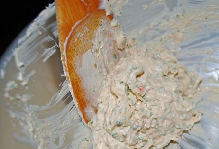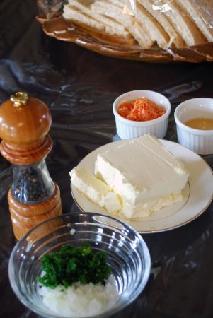 クリームチーズ、パセリ、玉ねぎ、サーモンを焼いてほぐしたもの