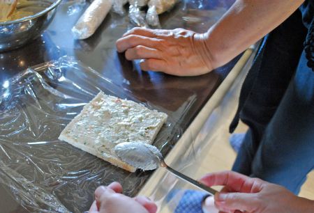 このディップを参加者全員でパンにくるくると巻き、ロールサンドを作る。