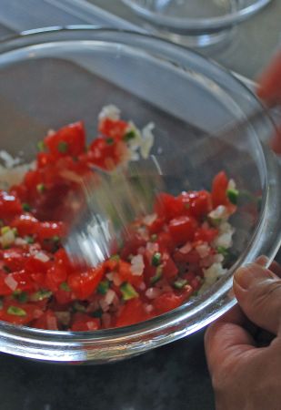 ヴィネガー入りサルサソースをかける。