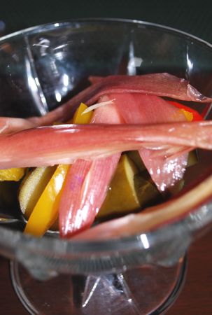 ワインヴィネガーに漬け込んだキュウリ、パプリカ