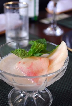 一宮の旬の桃&桃とバナナのスープのデザート。