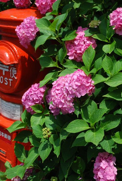 こんな赤い紫陽花も最近のものだ。