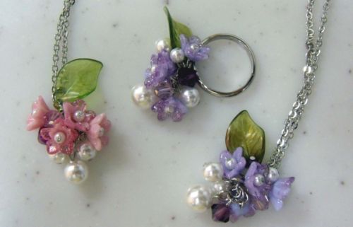 紫陽花をイメージしてこんなアクセサリーを作ってみた。