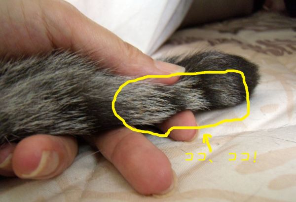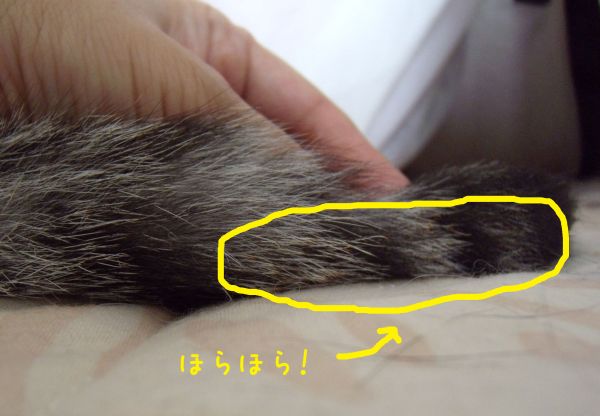 それでも飼い主としては心配だったので、焦げたシッポを見せてもらった。