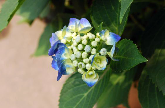 ブルーの紫陽花がある。