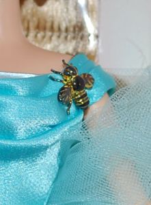 ドレスの肩にマルハナバチのブローチを付けているため