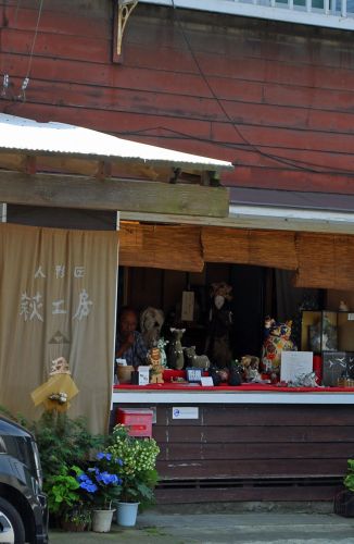 そのお寺の脇には陶器の店があって、店先の縁台に並べてある器にも