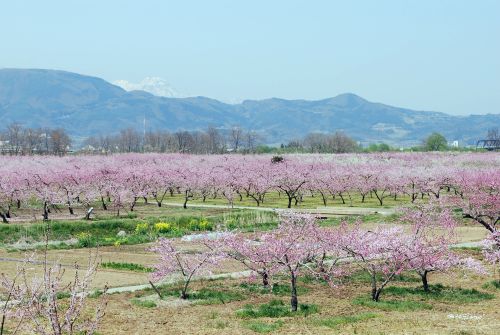とおやまにのこるゆき いちめんのもものはな