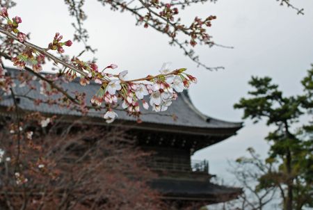 光明寺は山門の間から見える桜が美しいのだが