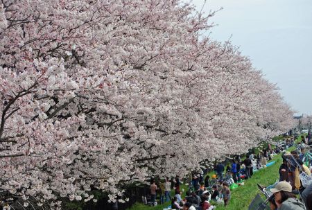 うっすら桃色になっているが、一目十万本の満開になるのは