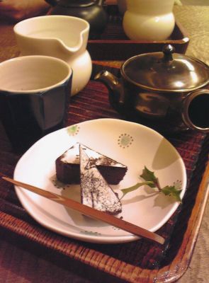 美味しいが、日本茶にガトーショコラは少し濃厚だと思う。