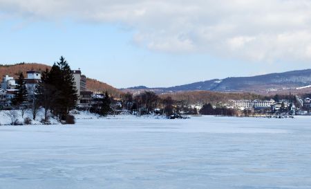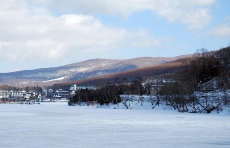 今年は暖かいと思っていたが、湖には氷が張って