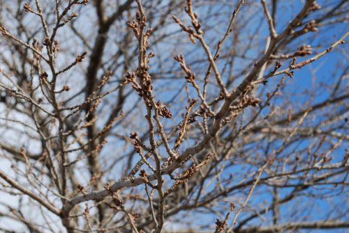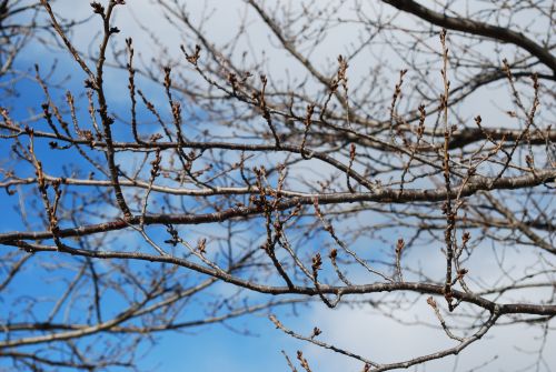 諏訪湖のほとりの桜の枝を撮ってみた。