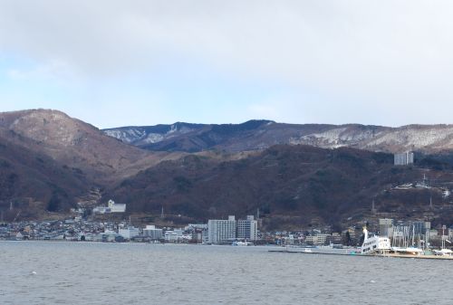 この画像ではわからないが、諏訪湖は強風で白波が立っていた。