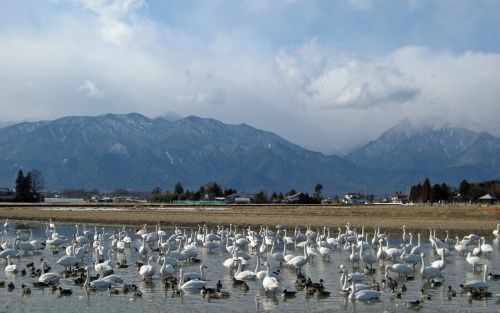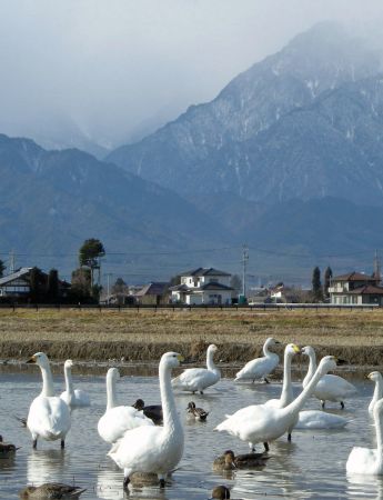 3年ほど前に、安曇野で個人の休耕田に遊びにくる白鳥たちを