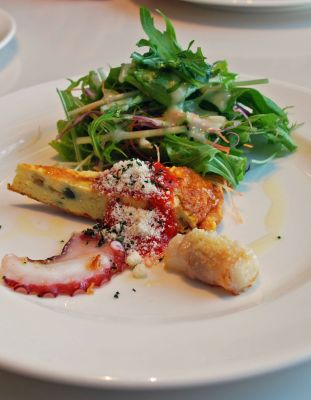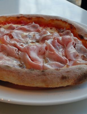 私たちはパスタとピッツァを1つずつ選び、シェア。