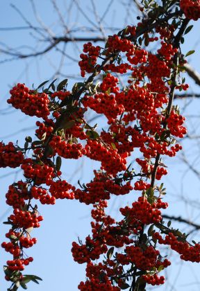 冬の陽を浴びて、朱色の実が迫力を増す。