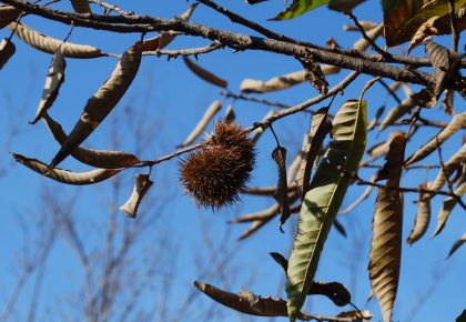 立ち木の葉もすっかり落ちて、残っている葉っぱも白茶けている。