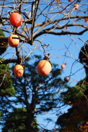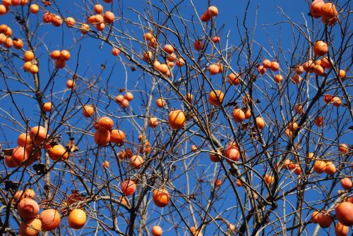 従姉の家の柿 葉っぱを全部落として、実だけを残してある。