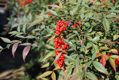 お赤飯やさつま揚げに添えられていた南天。