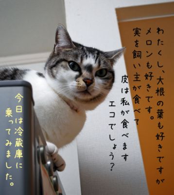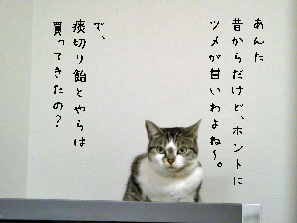 「人間は99円の茶碗、猫は半額でも995円の茶碗でご飯を食べる、とね。」