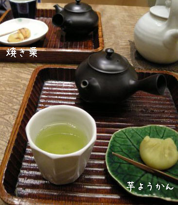 この日のお茶請けは焼き栗と芋ようかんからチョイス