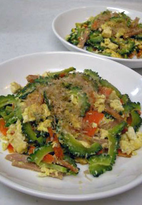 ゴーヤの量が少なかったのと、カツオ節をふりかけるのを