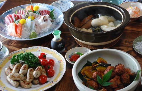 自分の家で作った大根と、手作りツミレ、手作り蒟蒻が入ったおでんも加わり