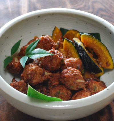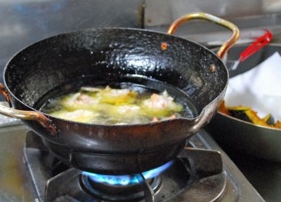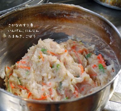 かぼちゃの素揚げを添えて。 さつまあげ、完成。