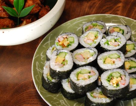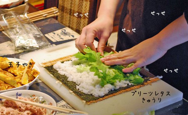台所を覗くと、従姉の一人娘が巻寿司を作るのに奮闘中。