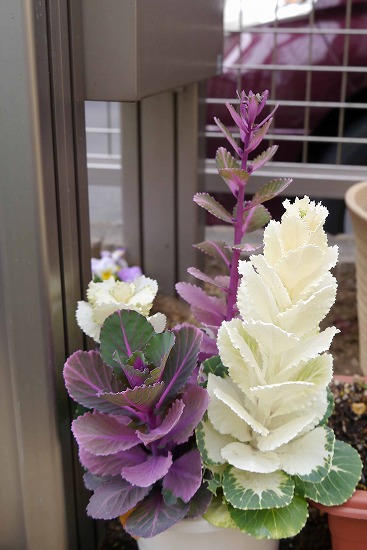 葉牡丹は薹が立ち、菜の花みたいな花が咲きそうだ。