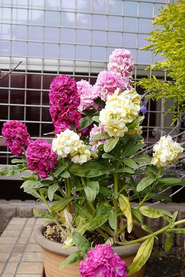 ストックは勢いよく、今を盛りと咲いている。