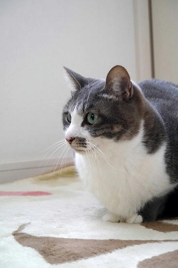 メイ部屋に入って、子猫の不在にがっかりする銀猫。
