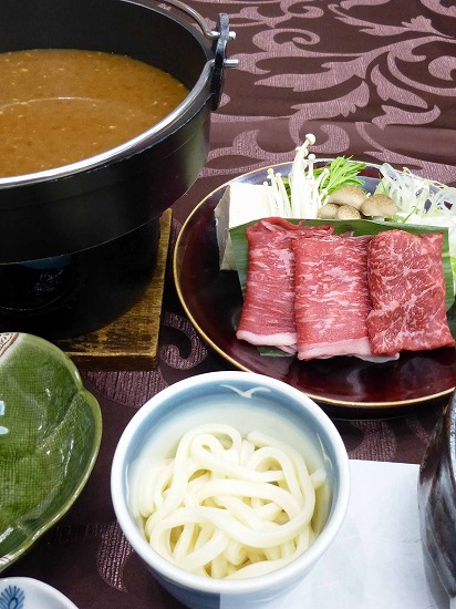 このコースの目玉のひとつ、黒毛和牛の酒蔵すき焼き。