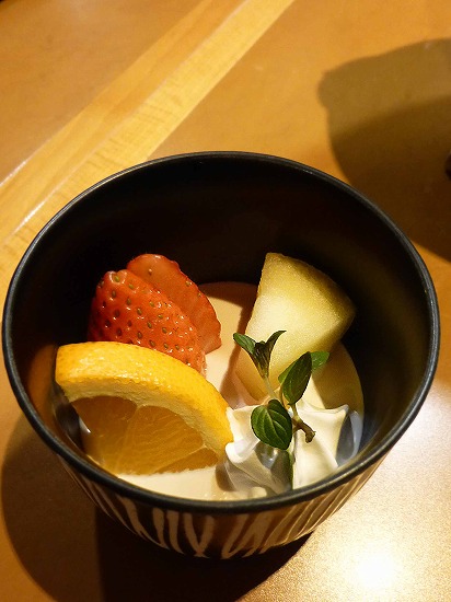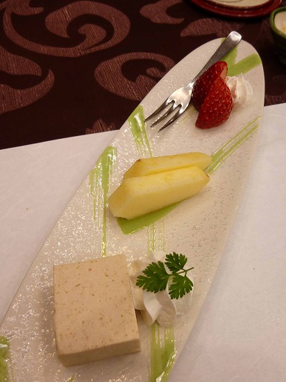 落花生のババロア、ふじりんご、苺。