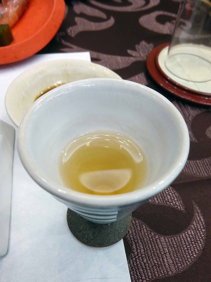 諏訪湖畔のホテルでは夕食時に必ず一口の「かりん酒」がでる。