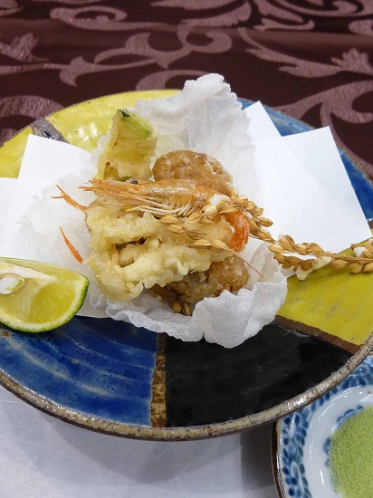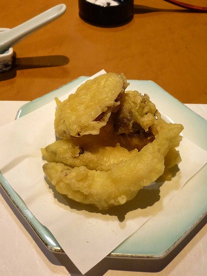 これは夕食会場で板さんが揚げて、揚げたてが供される。