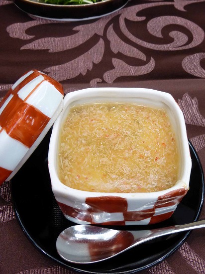 野沢菜の「おやき」に蟹たっぷりのあんかけ。