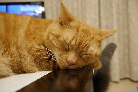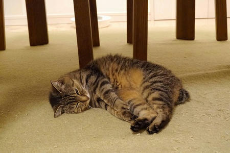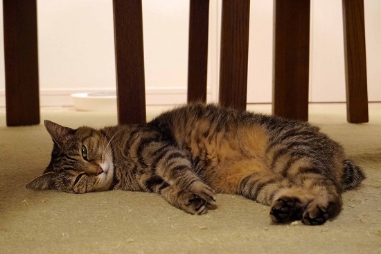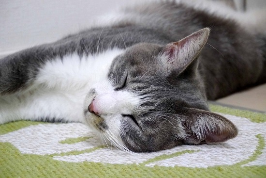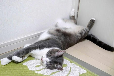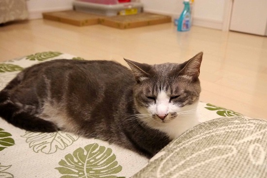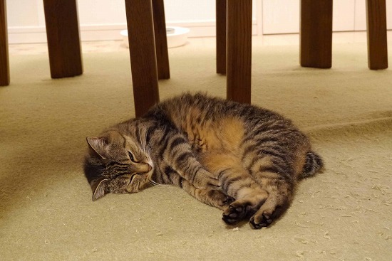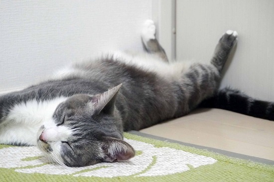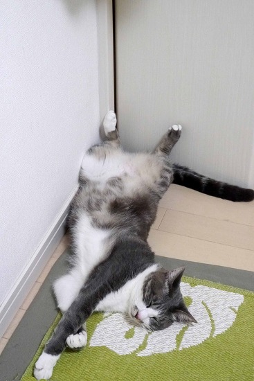 ニンゲンにはさっぱり心を開かない銀猫の寝相。