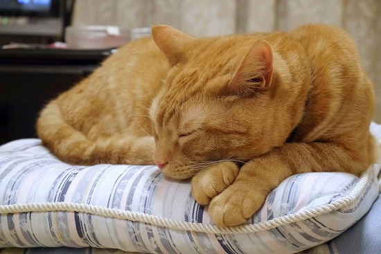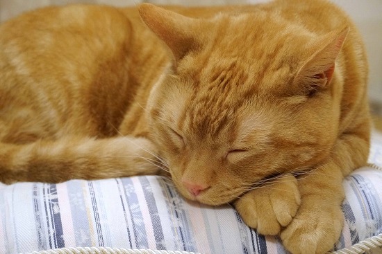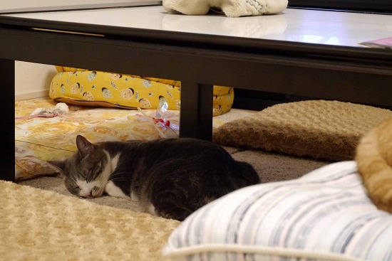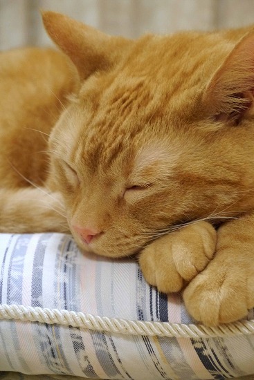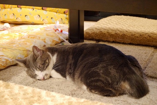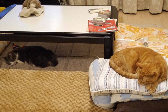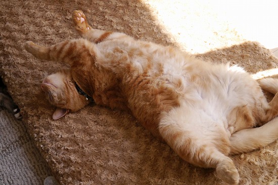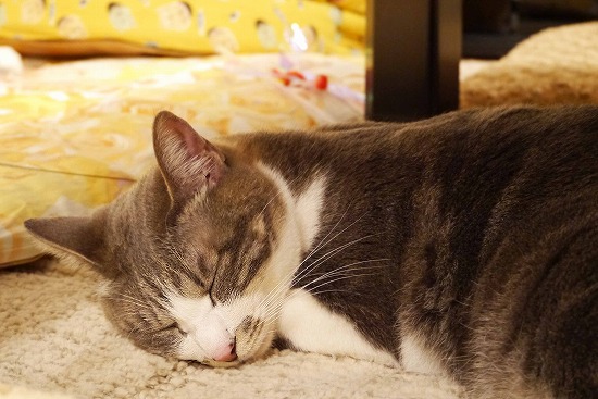 ♂猫たちから離れ、気持ちよくお休み中である。